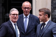 Кир Стармер, Фридрих Мерц и Эмманюэль Макрон. Фото: ADRIAN DENNIS / Pool / Reuters