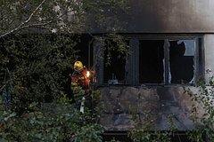 Отмечается, что обломки одного из дронов попали в жилой трехэтажный дом, в результате чего начался пожар. Также, по данным канала, были выбиты стекла, обвалились балконы и посыпался вход в подъезд.